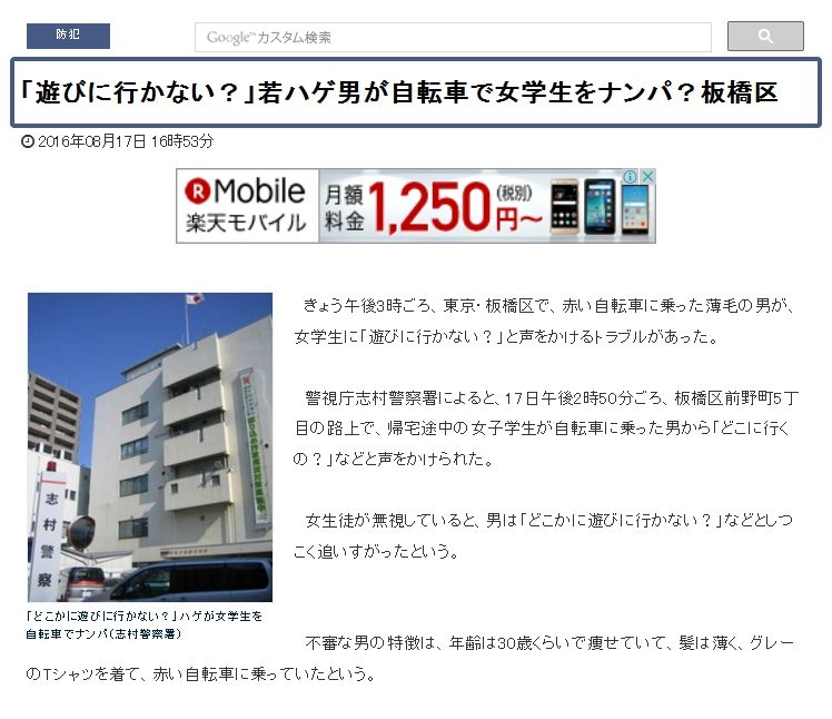 「どこかに遊びに行かない?」 ハゲが女学生をナンパするトラブル…板橋について