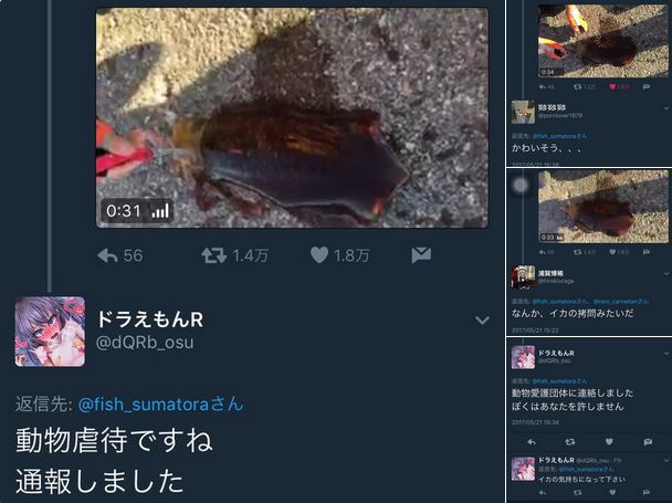 確かに、ひとつの生き物の命が失われようとしていることに変わりはない。しかし、これは決して虐待などではなく、「食べる」ためにする行為であり、極論を述べるならば、食べることをやめてしまったら人は死んでしまう。中には、「動物虐待」を指摘するコメントを「面白半分で書いた」といったユーザーも見られ、大きく波紋を広げている。