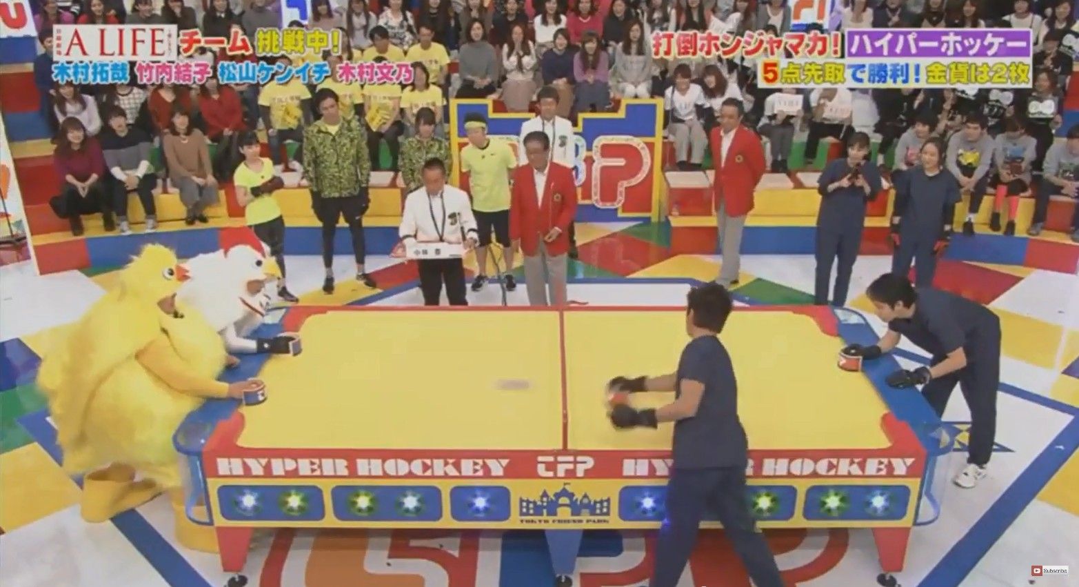 途中までは阿部チームに総合得点で負けていた木村チームだったが、最後のエアホッケーにて、木村がホンジャマカから連続して点数を決め、勝利を掴み取った。