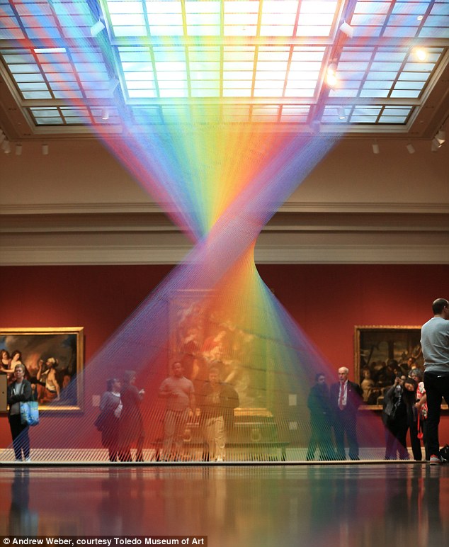 この虹はメキシコ人アーティストの作品で、日光が天井に取り付けられたスリッドを通ると、