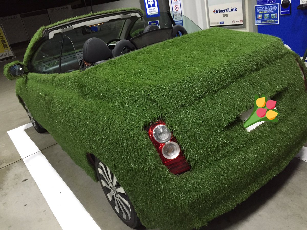 【画像】 ガソリンスタンドに停まってた車にめっちゃ草生えてた