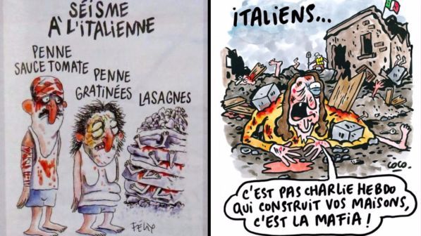 【画像】 仏紙シャルリーがイタリア地震風刺画、被災者を「ラザニア」扱いについて