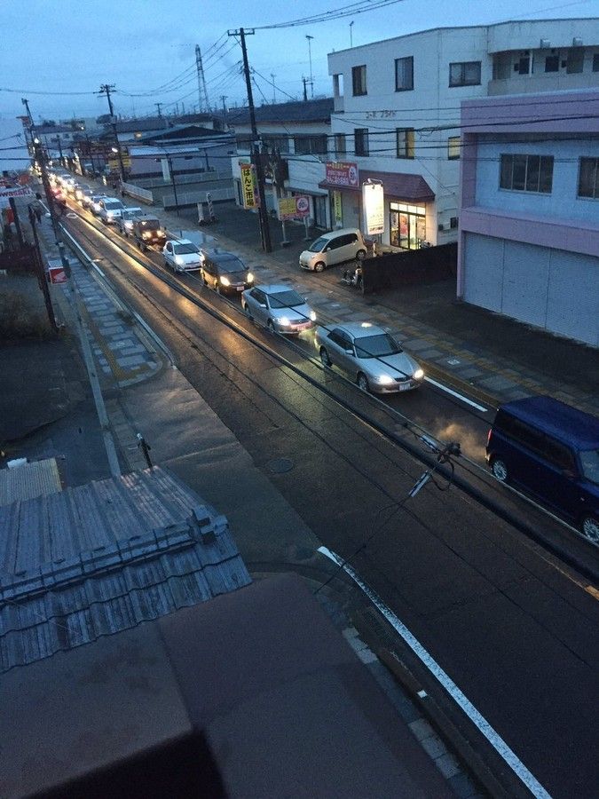 読売新聞が福島県いわき市内で撮影されたものをツイッター上にアップした。避難する住民の車で道路が渋滞していることがわかる。
