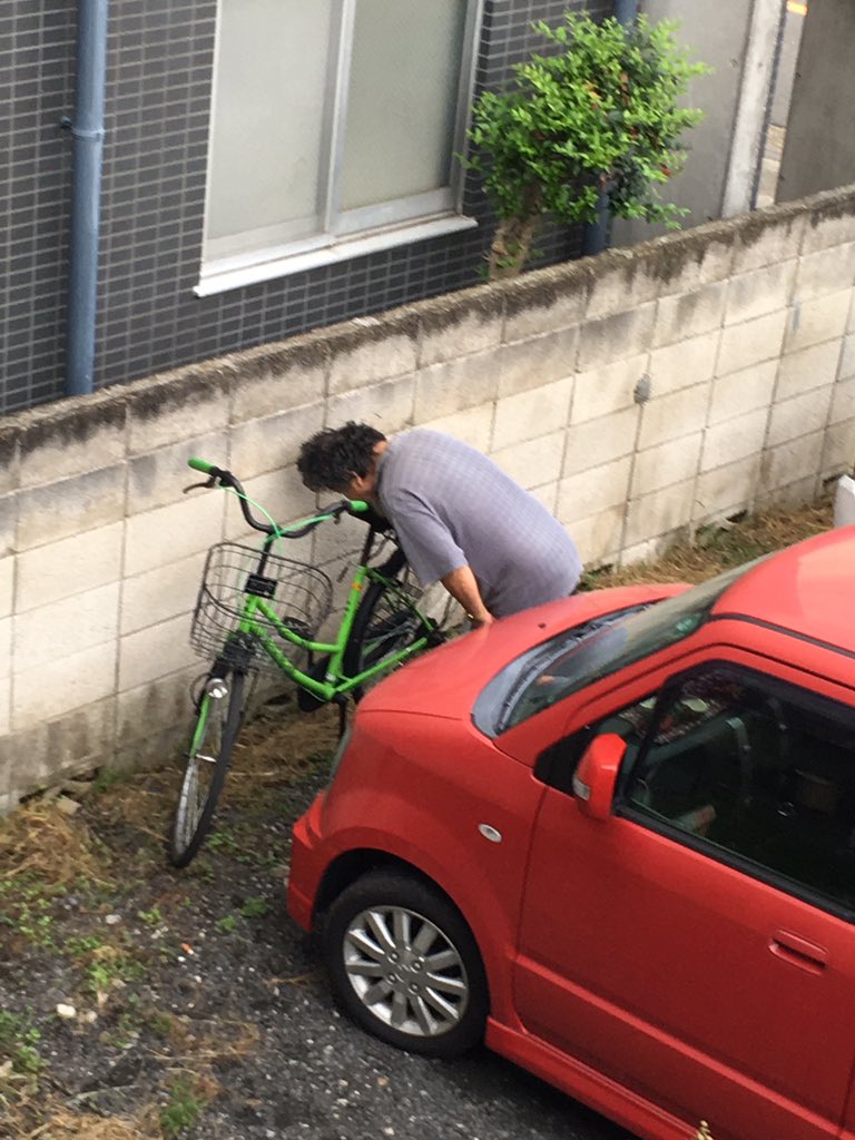 家の下に住んでるおじさんが、前からうちの自転車になんかしてて、今日こっそりママと見てたら、