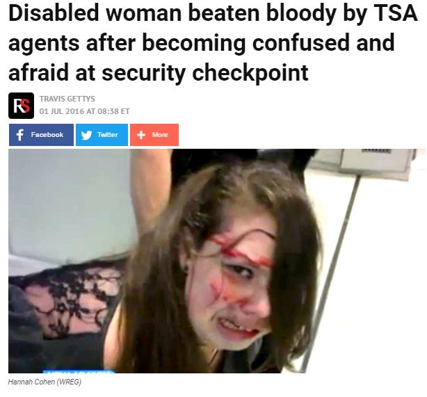 【米国】 脳腫瘍手術後の障害の少女、空港のセキュリティチェックで職員に殴られ血まみれにについて