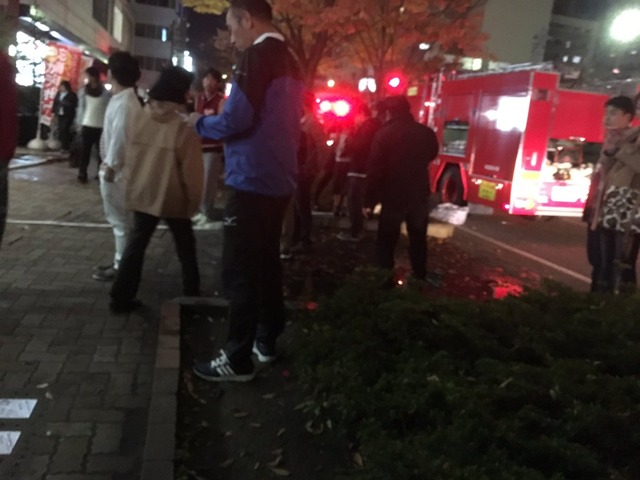 現場では、建物内に火災警報が鳴り響くとともに、店内にいた客が急いで外に避難するなどし騒然としています。