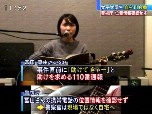 位置情報確認せず被害者宅に臨場東京都小金井市で、私立大3年のアイドル活動をしていた冨田真由さん(20)が刺され重体となった事件で、警視庁は25日、冨田さん本人が携帯電話からかけた110番を受けた際に位置情報を確認しなかったため、警察官を事件現場ではなく、冨田さん宅に向かわせていたと明らかにした。