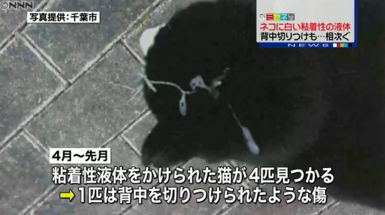 その後も4月から先月にかけて、粘着性の液体をかけられたネコが4匹見つかった。このうち1匹には背中を切りつけられたような傷もあったという。