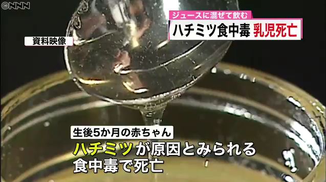 ハチミツで食中毒 生後5か月の乳児が死亡