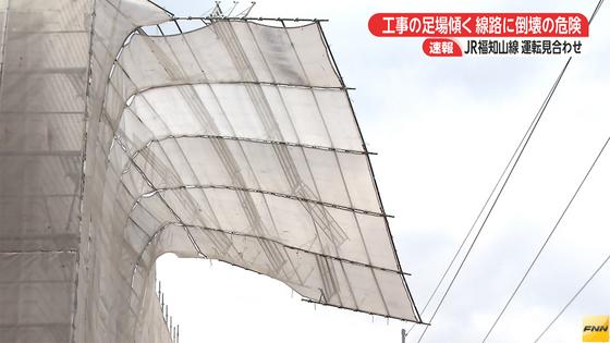 14日午後、兵庫・宝塚市で、ビルの工事用の足場が崩れて、線路上に倒れかかり、