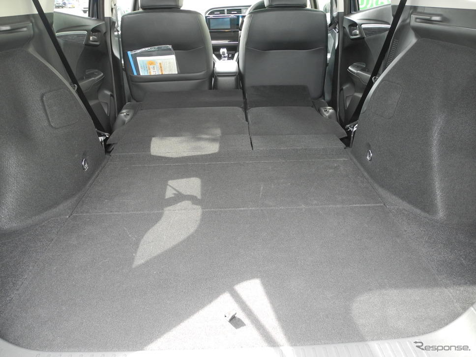 シャトルの最大の特徴は車内が広いということ。しかも、2列目シートを前方に倒すと、フラットな床面になり、最大184cmのスペースが広がる。身長178cmの筆者でも足の伸ばして十分寝られるサイズだ。