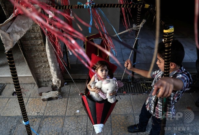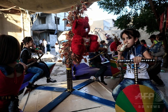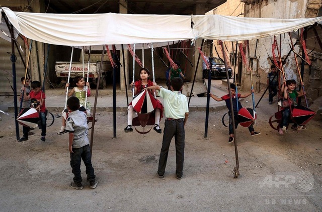 ロケット弾のブランコで遊ぶ子どもたち シリア反体制派の町(画像あり)