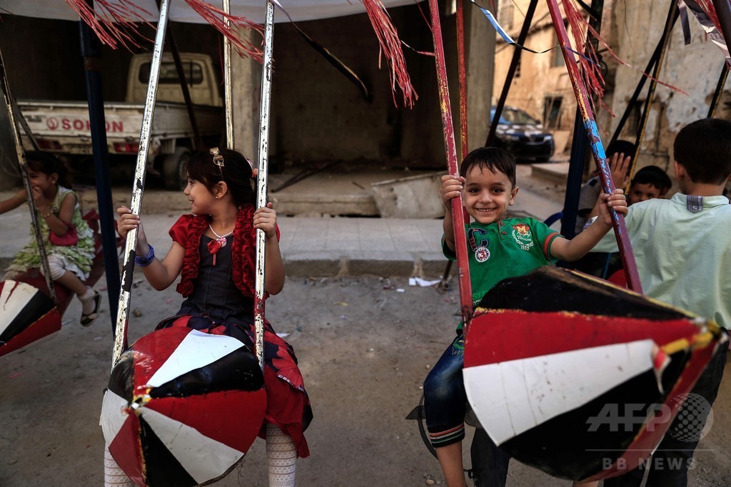 ロケット弾のブランコで遊ぶ子どもたち シリア反体制派の町(画像あり)