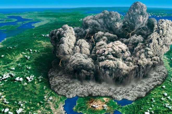 鬼界カルデラは約7300年前に噴火を起こし、九州南部の縄文文化を滅ぼしたとされる。巽教授によると、こうした超巨大噴火は日本では過去12万年で10回発生。実際に起これば国内で死者が最悪約1億人と想定している。