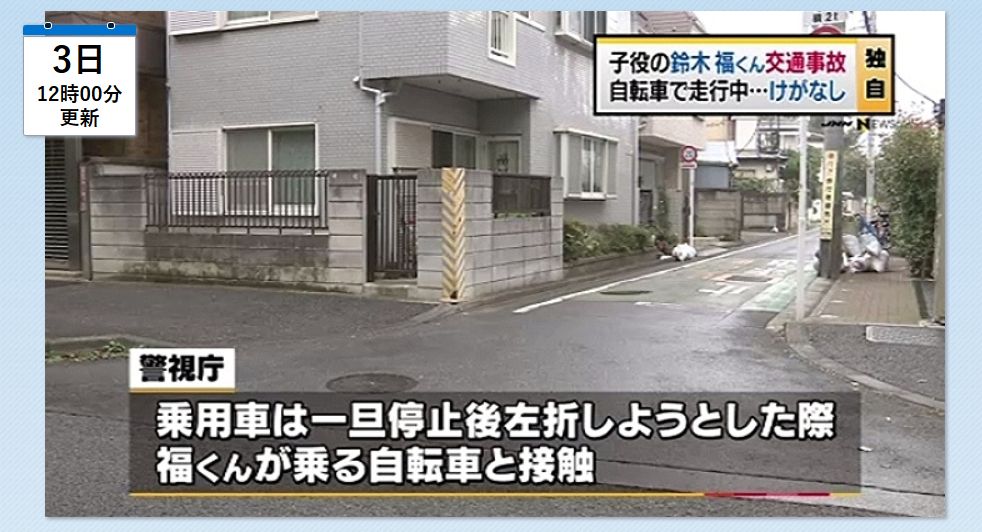 人気子役タレントの鈴木福くんが東京・杉並区の路上で自転車に乗っていたところ、乗用車と接触する事故にあっていたことが、警視庁への取材で分かりました。