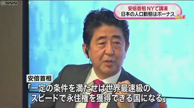 安倍首相 「世界最速級のスピードで永住権を獲得できる国になる。乞うご期待です」と日本をアピール