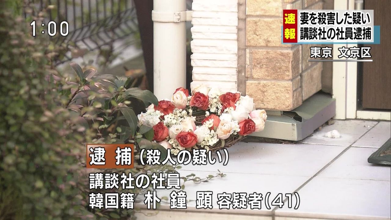 1東京都文京区の自宅で昨年8月、首を絞め妻を殺害したとして、警視庁捜査1課は10日、殺人容疑で、講談社「モーニング」編集部編集次長、朴鐘顕容疑者(41)を逮捕した。朴容疑者は人気マンガ「進撃の巨人」の編集を手がけたことで知られている。