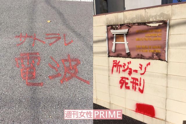 落書きは“所ジョージ死刑”が1つ、“サトラレ電波”が2つ。