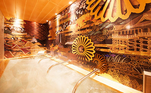 外国人観光客をターゲットにしており、和服を着た女将が出迎える。大浴場の壁面には、銭湯絵師による