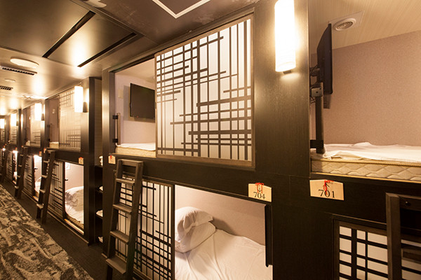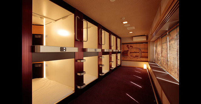 ホテルとも既存のカプセルホテルとも違う宿泊施設となっている。日本の伝統美をいたるところに