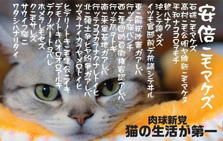 猫好き結集「肉球新党」 「吾輩は戦争法反対である」「共謀罪いらにゃい」「安倍ニモマケズ」について