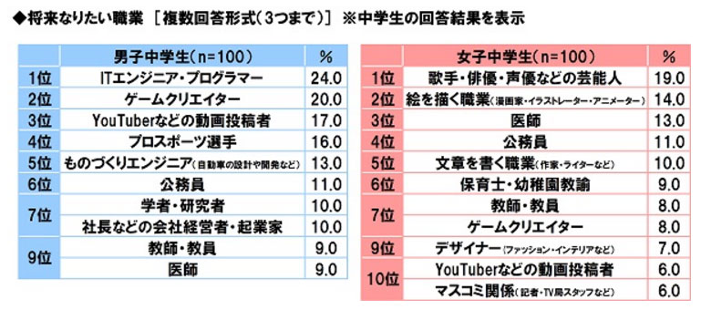 男子中学生がなりたい職業1位wwwwwwwwwwwwwwwwwwwww