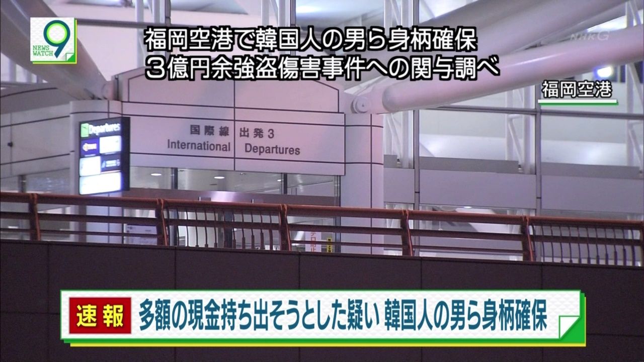 福岡空港で韓国人の男ら身柄確保 3億円余強盗傷害事件への関与調べ