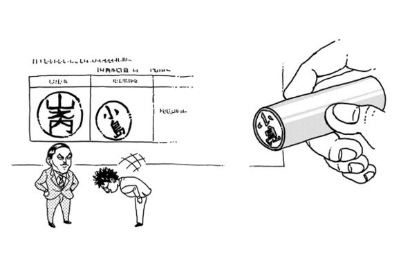 しかも、できれば上司の側に少し傾けて押す。こうすると、キミのハンコがへりくだって上司のハンコにお辞儀をしているように見え、感じがいい。え、何? いくら何でもそれは冗談だろう、だって? とんでもない。大マジである。