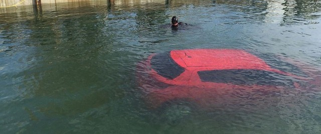 女性はトヨタ・ヤリス(日本名:ヴィッツ)」のモーターが止まる前に窓を開けることに成功し、沈む車から脱出した。