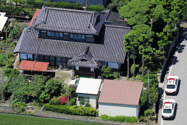 女性が死んでいるのが見つかった住宅=27日午前10時12分、長野県松本市梓川倭、朝日新聞社ヘリから、堀英治撮影拡大写真