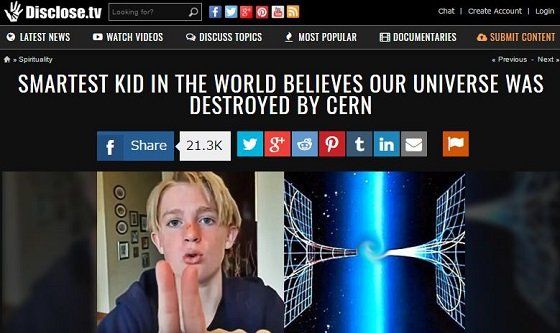 13歳天才物理少年が警告 「CERNがパラレルワールドを破壊中。宇宙が滅亡する」