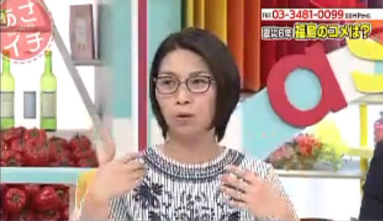 「なんか、『私は福島米食べてます』って言えない自分がいるし、このまえスーパー行った時に(福島米が)売ってたんです、ちょっと安くて。でも買わなかった安いのに。何故かというと、一杯並んでるのに減って無いんです。隣の200円くらい高い方が減ってるお米が。じゃあ、みんな買ってないから私も買わんとこって言うのがどこかであったりとかあって、じゃあ私がこのお米を躊躇無く買うにはこういう番組で『福島米すっごいみんな食べるようになりました』とか、プラスなことがあったら私も食べようって単純になるのかなって、こういうの(特集)ばっかりやってるとまた更に食べんとこって思う反面、検査したらほとんど基準値全然大丈夫ですって思ってるけど、食べない人の方が多いんだって思うと、『じゃあ……』ってなる自分が居たりとか」